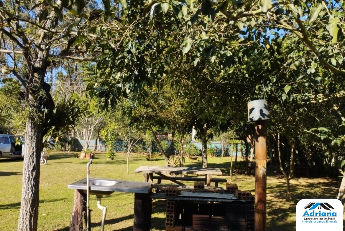 Adriana imóveis urbanos & rurais vende pequeno sítio de 1500 m² ( 30 x 50 m ) localizado a 5 km da RS 040 em Águas Claras – Viamão. Casa de alvenaria com uma sala , cozinha , três dormitórios sendo um deles suíte, mais um banheiro e excelente cozinha campeira com ampla sala de estar conjugada e lavanderia. A propriedade possui poço artesiano, dois galpões luz , internet instaladas e pomar com 60 árvores frutíferas produzindo. Lugar com excelente vizinhança e natureza privilegiada onde poderá observar abundância de aves silvestres e bandos de macacos bugios. Estuda parcelamento direto com entrada de R$ 100 mil reais , parcelas e reforço a combinar